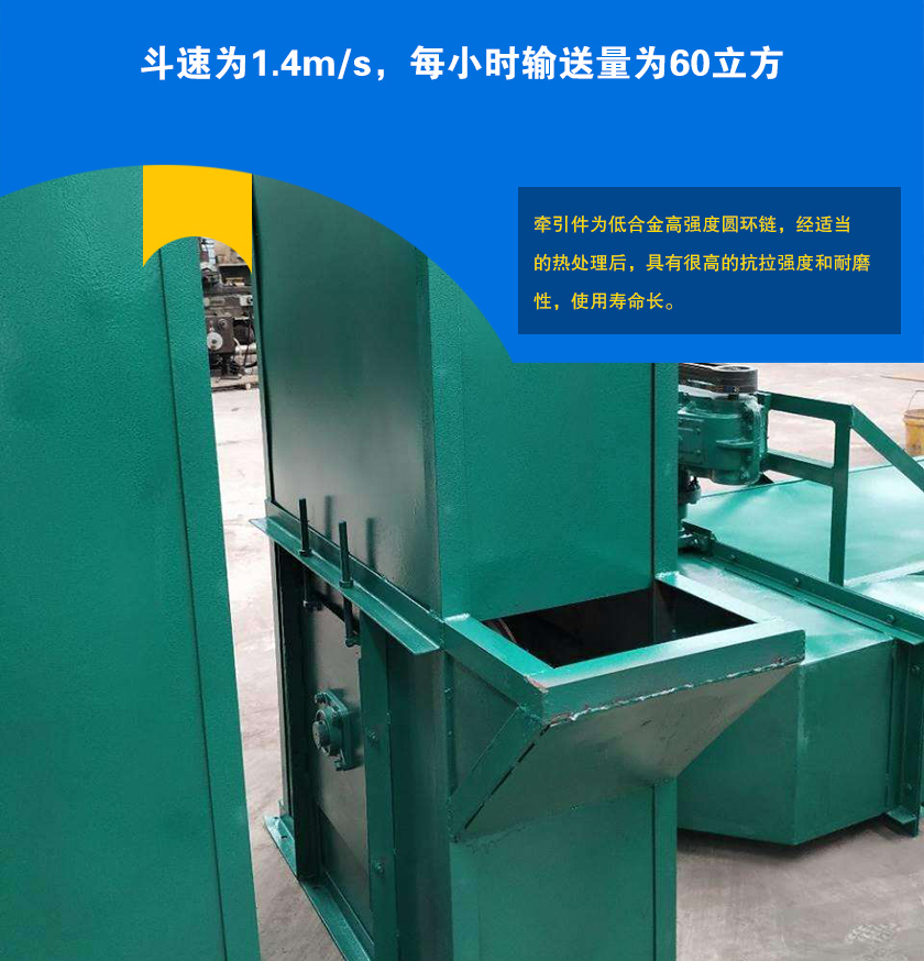 運行部件---由料斗和專用圓環(huán)鏈條組成,鏈條抗拉強度高、耐磨性好。