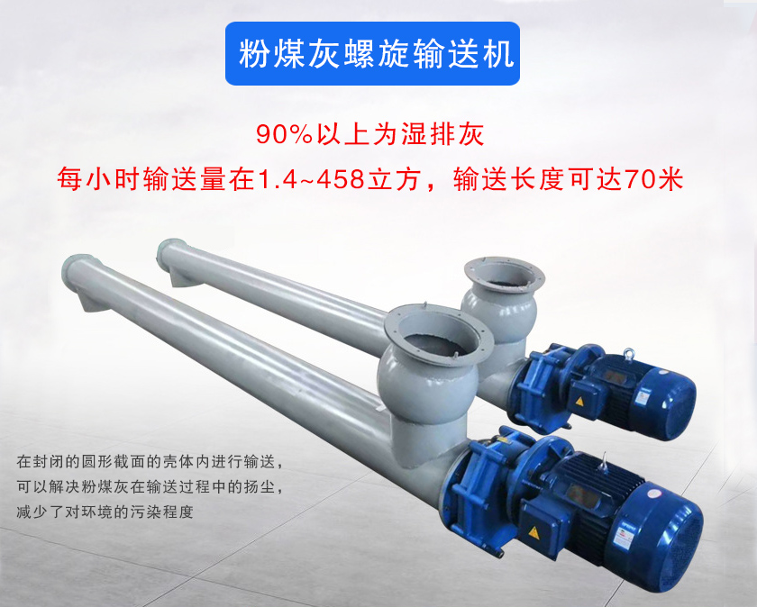 1、粉煤灰螺旋輸送機的整體扭矩更大且采用變螺距設計,進料端螺距小于出料端螺距,俗稱"吃得少,吐得快",能夠有效防止粉煤灰堵塞。