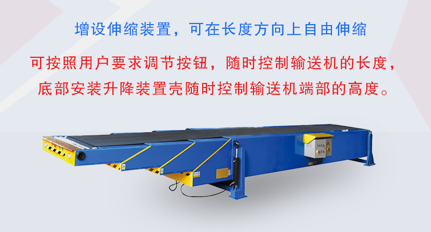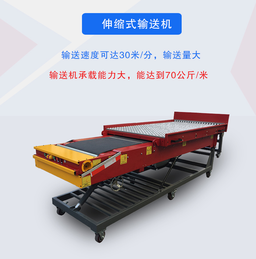 伸縮式輸送機(jī)即伸縮式皮帶,可以根據(jù)工作面位置變化調(diào)整自身長度的輸送機(jī),伸縮式輸送機(jī)可在長度方向上自由伸縮,自由調(diào)控輸送長度,減少了裝卸貨物的時(shí)間,降低了工人的勞動(dòng)強(qiáng)度,可用于輸送粉狀、粒狀物料輸送.