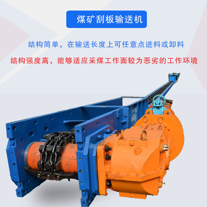 煤礦刮板輸送機主要用于中小型煤機礦井下采煤工作面運輸煤炭,可以作采煤機的運行軌道,還可兼具移架時的支點,煤礦刮板輸送機機殼密封嚴謹,可防止物料輸送過程中產(chǎn)生粉塵污染.