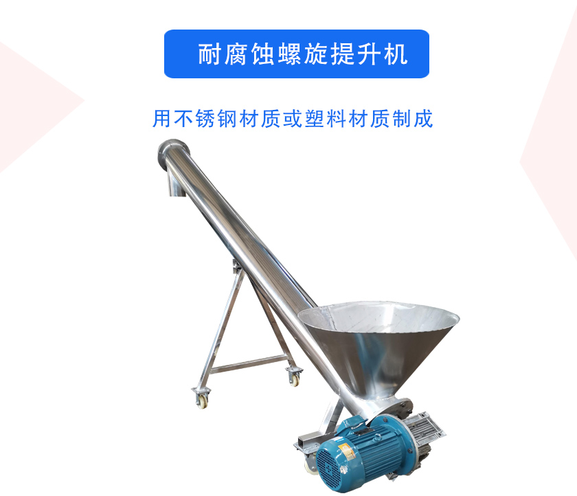 耐腐蝕螺旋提升機主要是采用不銹鋼材質或塑料材質制成的,可以滿足酸堿性等腐蝕性物料的輸送問題,可應用在化工、食品、醫藥等行業.