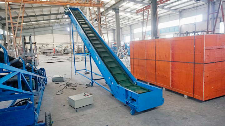 大傾角皮帶輸送機比之普通皮帶輸送機采用了波狀擋邊和橫隔板輸送帶,對于大傾斜角度輸送物料有極大的優勢,其可實現0°~90°的角度輸送。大傾角皮帶輸送機的型號齊全,主要有帶寬400mm,500mm,650mm,800mm,1000mm等多種型號。不同型號對應的輸送角度、輸送產量均不相同,我們廠家設計這么多的型號,旨在滿足用戶的多樣化輸送需求。舉個例子,帶寬300mm的大傾角皮帶輸送機,傾斜角度45°的輸送產量大11Q3/h,而傾斜角度增大到60°,則輸產量有8Q3/h。大傾角皮帶輸送機的具體參數如下: