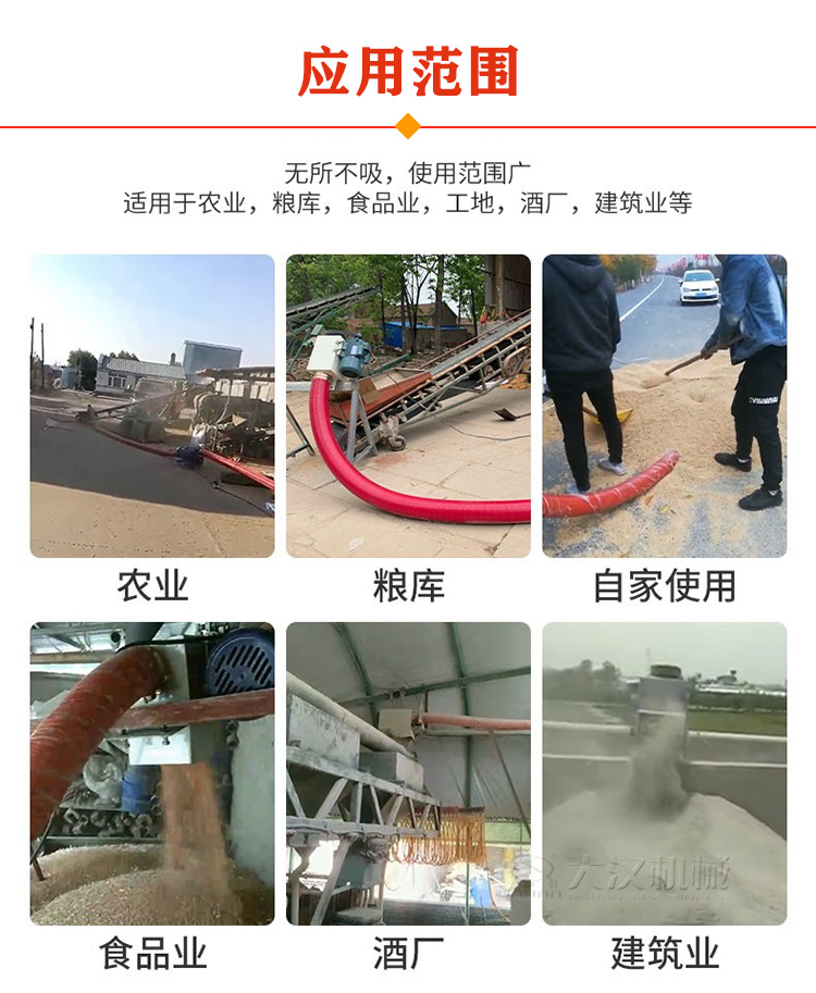 吸糧機(jī)是農(nóng)場吸糧、抽糧的好幫手,適合糧食運(yùn)輸、裝載、堆垛、儲(chǔ)存等,長度3-30米,每小時(shí)可輸送20噸糧食,它可以水平、傾斜或垂直輸送谷物。糧食垂直輸送時(shí),每小時(shí)輸送量可達(dá)6噸。