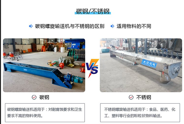 碳鋼無軸螺旋輸送機(jī):采用Q235碳鋼制造,主要用于水泥、煤炭、石料等磨損較大、對材料無特殊要求的行業(yè)。