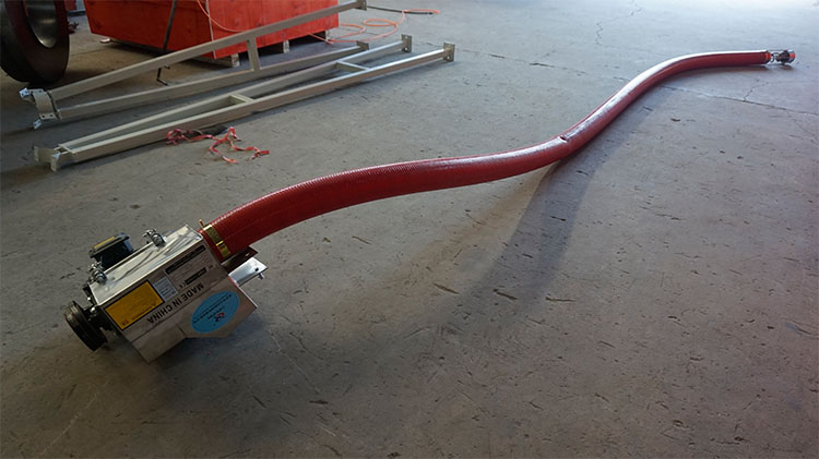 手持式100毫米柔性螺旋輸送機:單手就能靈動的機器,重量輕、體積小、工作時的推力小,可以手動操作,降低工作強度。