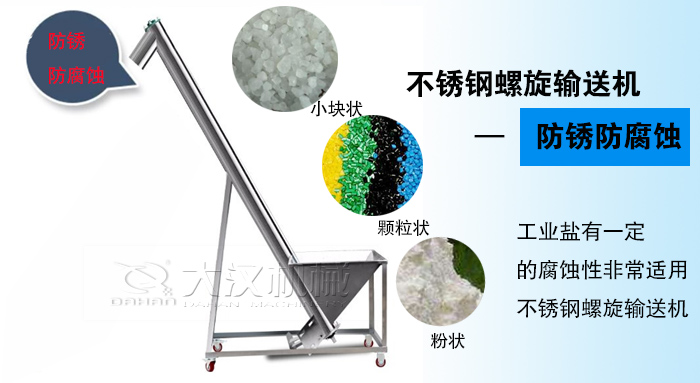 工業(yè)鹽有一定的腐蝕性,而不銹鋼螺旋輸送機(jī)就適用于輸送有腐蝕性的粉狀、顆粒狀、小塊狀等物料,在防銹的同時(shí)也能達(dá)到防腐蝕的效果。