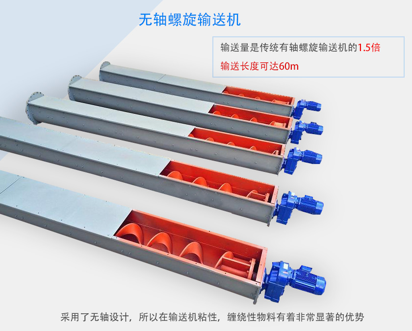 污泥這種物料具有極大的粘稠型,屬于巨不好輸送物料之一,相對于普通螺旋輸送機來說,無軸螺旋輸送機沒有中心軸,具有抗粘稠性,輸送過程中不會堵塞,輸送污泥都會選擇無軸螺旋輸送機。