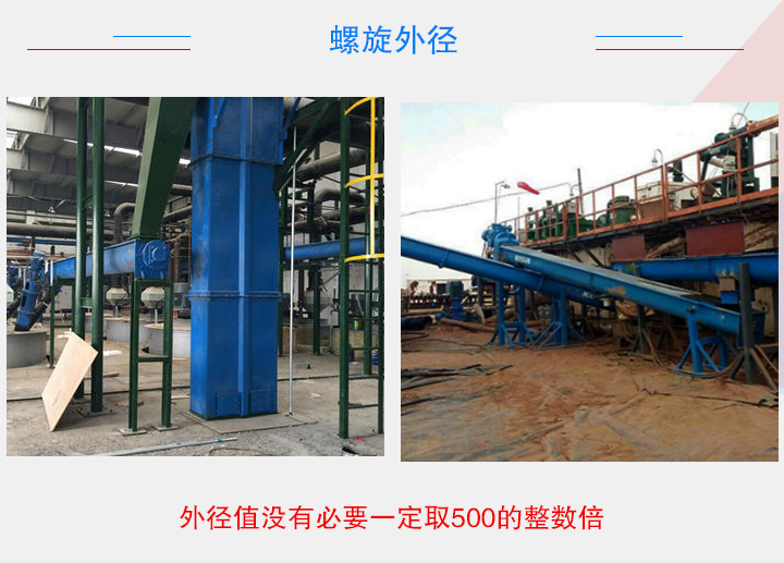 在相關(guān)參數(shù)穩(wěn)定的情況下,物料在料槽內(nèi)軸向移動(dòng)速度和圓周速度隨物料所在螺旋半徑的增大而增大。在選取螺旋輸送機(jī)的時(shí)候根據(jù)物料特質(zhì)選擇葉片和旋轉(zhuǎn)軸,直徑越大,效果越好,但是對(duì)于開式螺旋輸送機(jī),如果螺旋外徑過大,就會(huì)增加其制造成本,且不利于冷卻。此外,外徑值沒有必要一定取500的整數(shù)倍。
